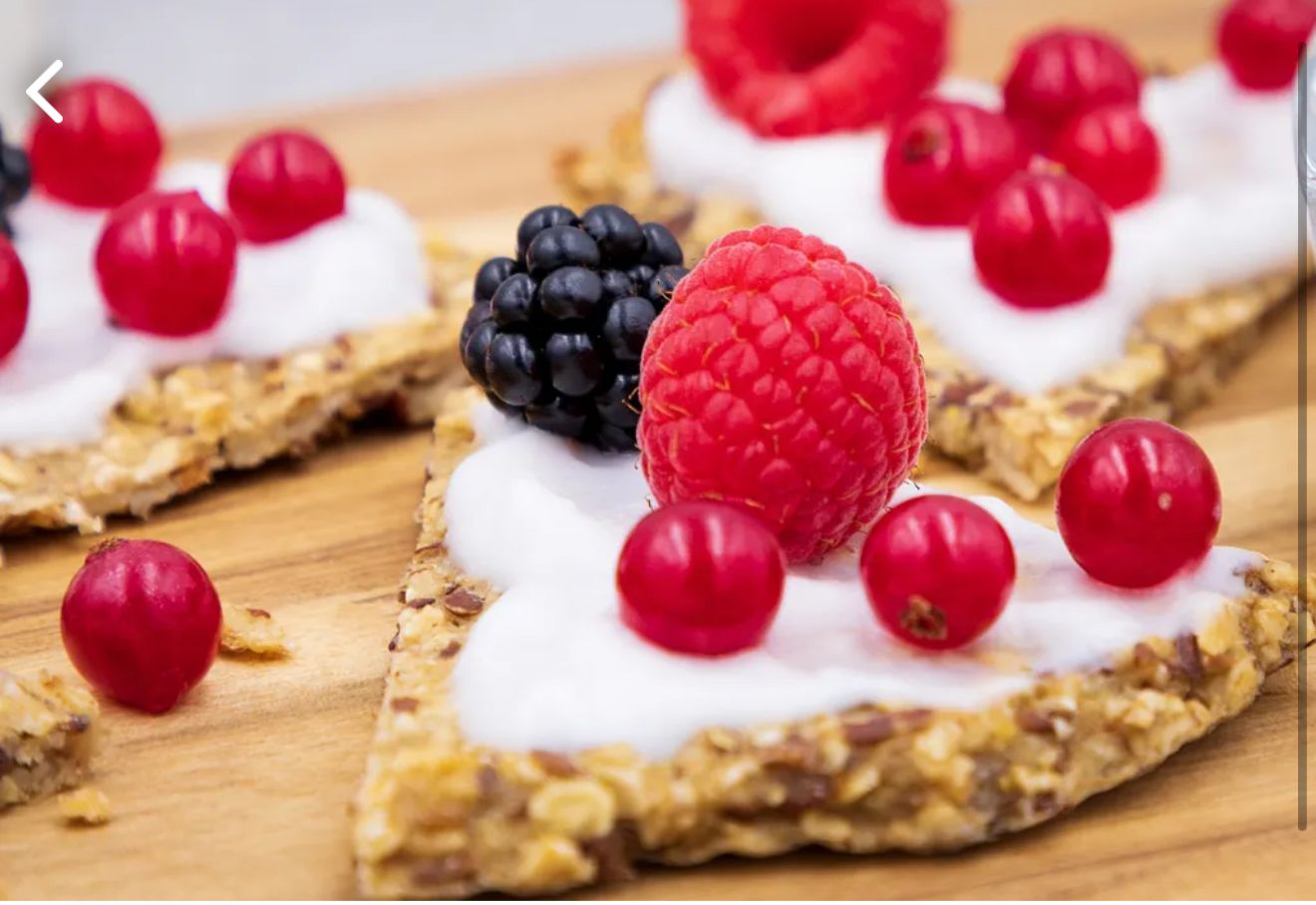 - Spennellare con lo yogurt di soia e gustare guarnendo con i frutti di bosco.